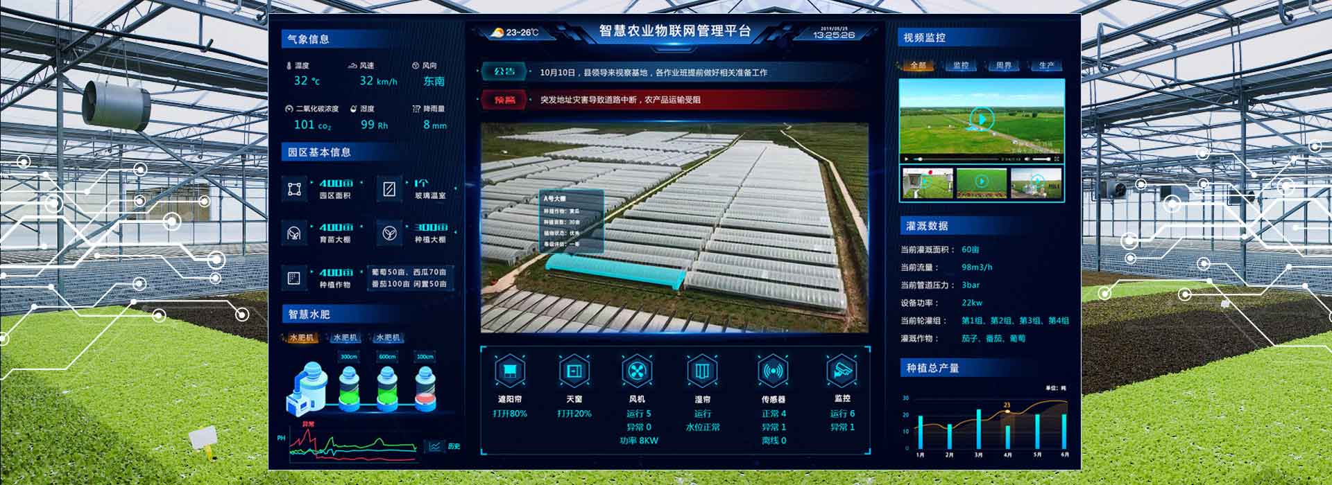LED環(huán)境六要素采集器外觀為P4.75LED雙色顯示屏設(shè)計(jì),顯示屏可外接多個(gè)傳感器,可實(shí)時(shí)采集溫室大棚內(nèi)的空氣溫度、空氣濕度、光照、二氧化碳濃度、土壤溫度、土壤濕度等環(huán)境數(shù)據(jù),并同步上傳至棚保姆物聯(lián)網(wǎng)平臺(tái),可通過(guò)LED環(huán)境六要素采集器自帶的LED雙色顯示屏及棚保姆物聯(lián)網(wǎng)平臺(tái)手機(jī)APP實(shí)時(shí)查看監(jiān)測(cè)數(shù)據(jù)。